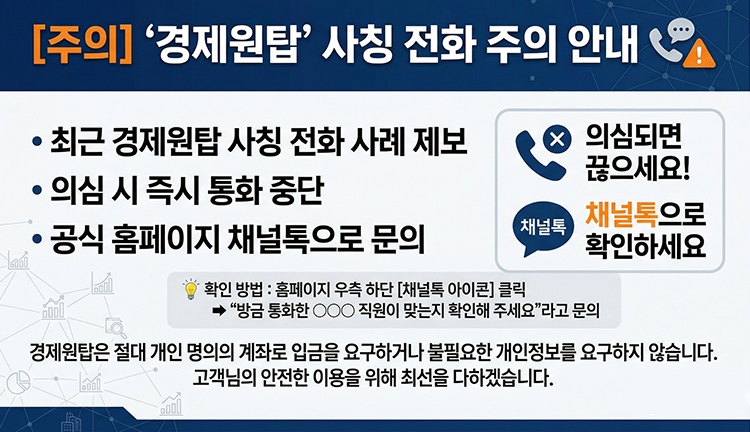 [주의] '경제원탑' 사칭 전화 주의 안내